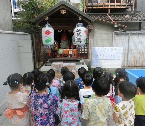 法とは、正しい心の姿。よいこと、悪いことの判断をしっかり身につける。自分の意志を的確に表現する。言葉の活動や正しい生活習慣の定着が、法を敬うこと。